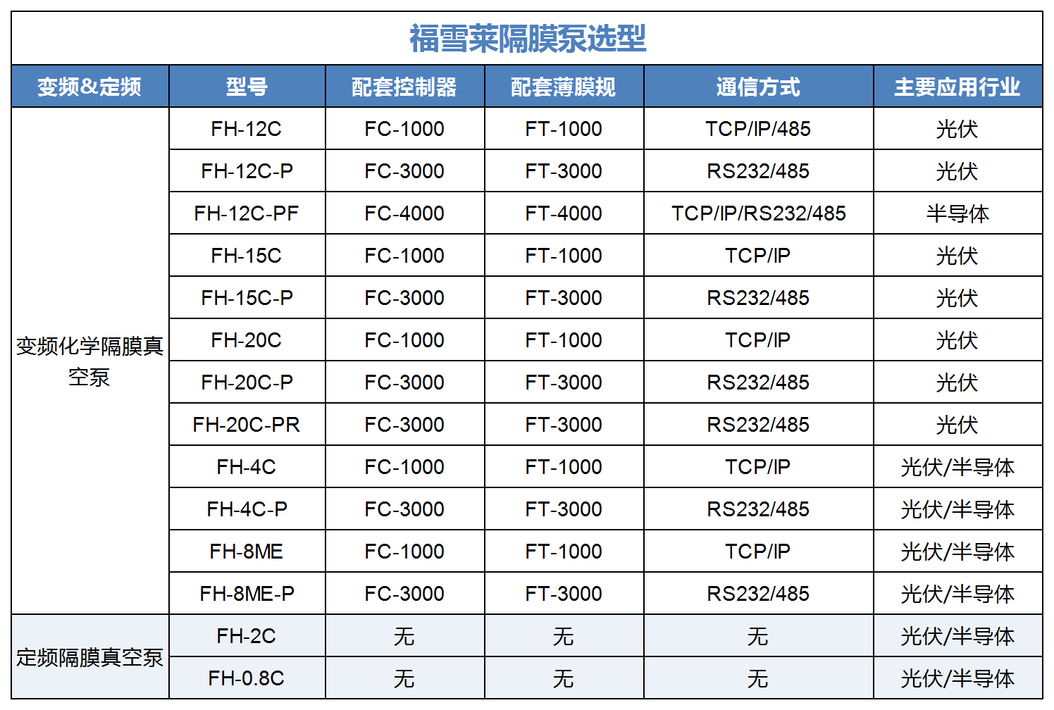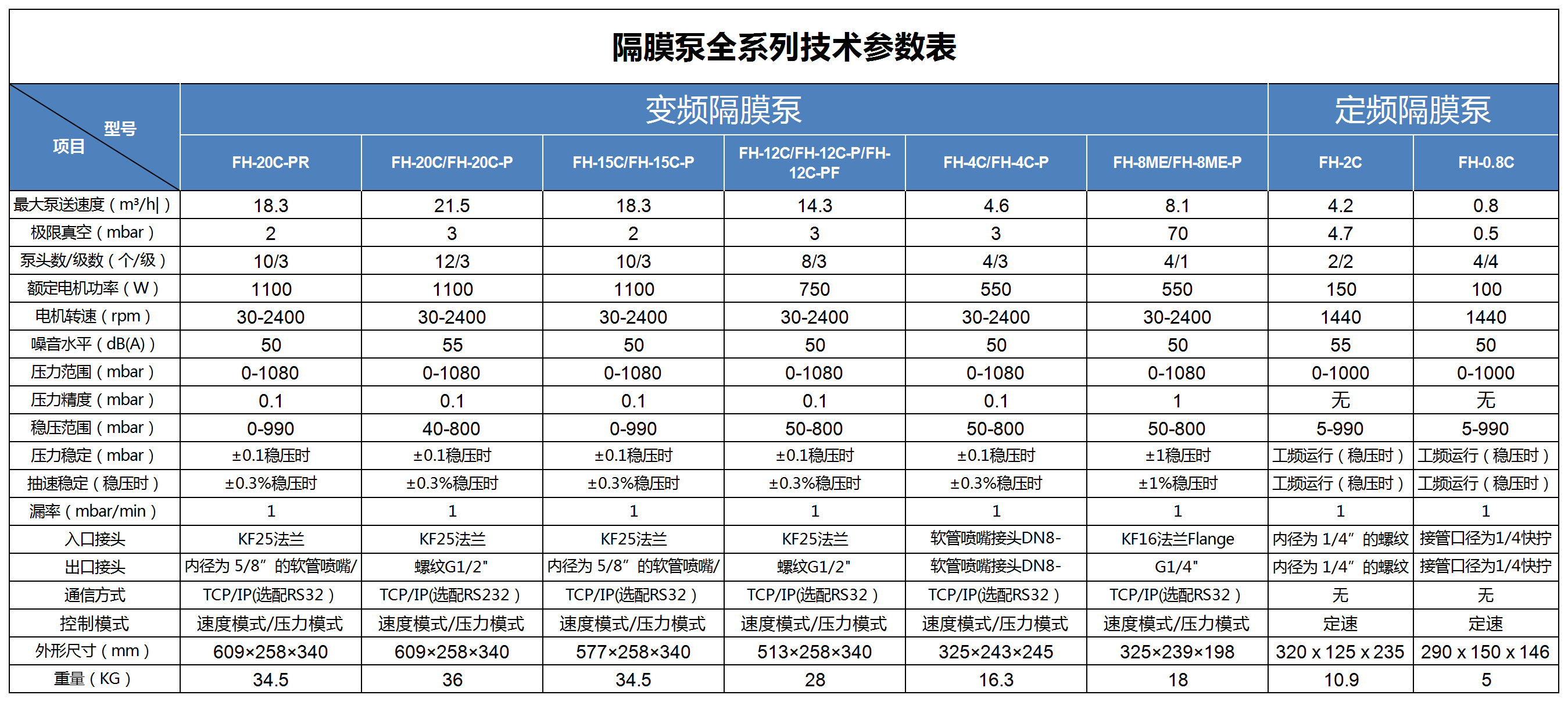 三、变频化学隔膜真空泵FH-20C(1000系统)产品参数