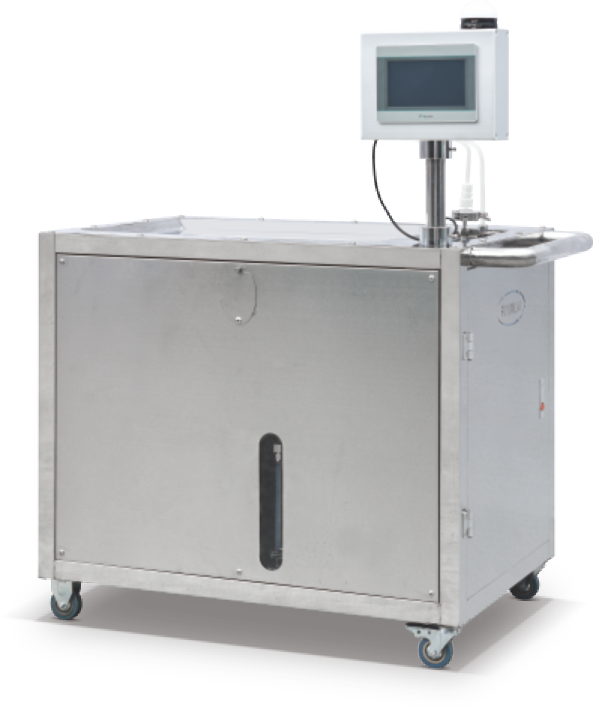 本套清洗机由真空测漏系统、清洗系统、热水系统组成,硬件设置上有清洗水箱,真空阀门、管路、电控箱、操作盒等组成(不含隔膜泵)。